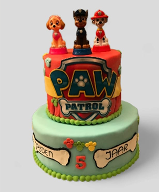 Gedecoreerde taart voorzien van Paw Patrol miniaturen