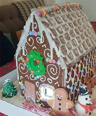 Gedecoreerd peperkoekhuisje voorzien van miniaturen